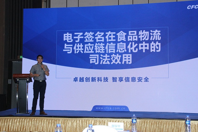來自中國金融認證中心產(chǎn)品方案總監(jiān)孫志峰先生現(xiàn)場分享了《電子簽名在食品物流與供應(yīng)鏈信息化中的司法效用》的主題內(nèi)容,分享了電子簽名的業(yè)務(wù)與司法、私鑰控制以及電子簽章方案的整體架構(gòu)等。