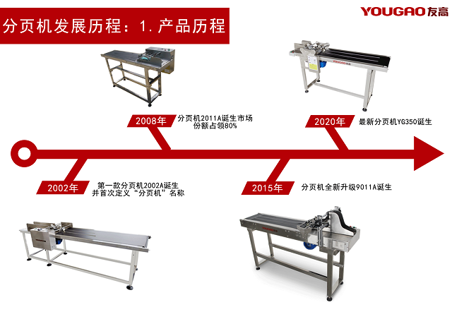 2002年,合肥友高第一款分頁(yè)機(jī)2002A誕生,并首次定義“分頁(yè)機(jī)”名稱;2008年,合肥友高分頁(yè)機(jī)2011A誕生,市場(chǎng)份額占領(lǐng)率達(dá)80%;2015年,合肥友高分頁(yè)機(jī)全新升級(jí)——9011A誕生,產(chǎn)品一經(jīng)推出,受到了市場(chǎng)的廣泛好評(píng)。