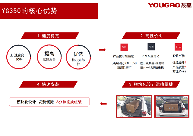 合肥友高緊緊抓住分頁(yè)機(jī)的痛點(diǎn),并針對(duì)分頁(yè)機(jī)進(jìn)行革新,以期為客戶更好的服務(wù)。對(duì)于此,合肥友高進(jìn)行產(chǎn)品升級(jí),YG350應(yīng)運(yùn)而生。