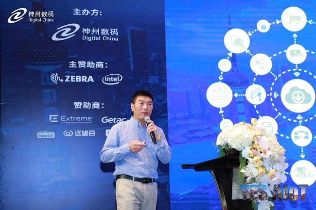 神州數(shù)碼集團終端戰(zhàn)略本部物聯(lián)網(wǎng)事業(yè)部產(chǎn)品經(jīng)理張丙忠,作“京東方智慧零售 數(shù)字化門店之旅”的演講。