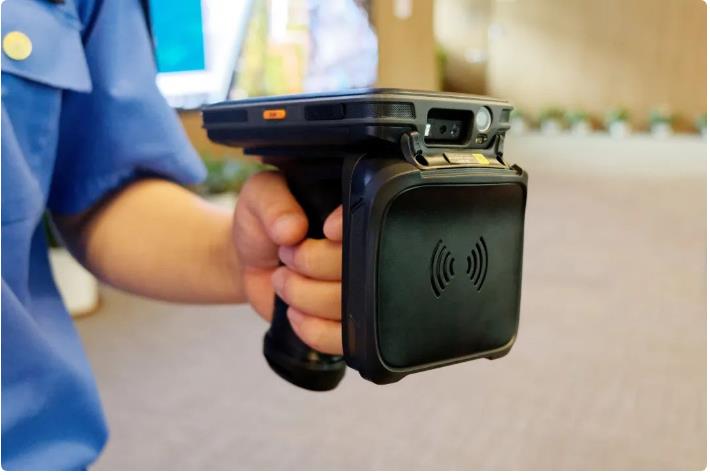 后來,張江城管中隊引入了RFID射頻技術(shù)。RFID標(biāo)簽具有身份識別匹配功能,可與“場所碼”一一綁定。城管隊員手持設(shè)備按道路巡檢,通過識別RFID標(biāo)簽的射頻信號,較遠(yuǎn)距離即可確認(rèn)“場所碼”張貼情況,對于遺失的“場所碼”,系統(tǒng)會自動提示。