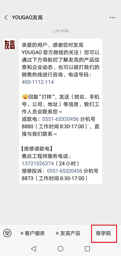第一步:微信掃碼關(guān)注友高服務(wù)號